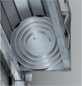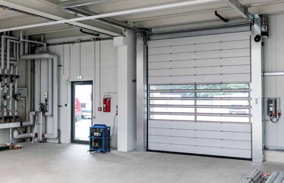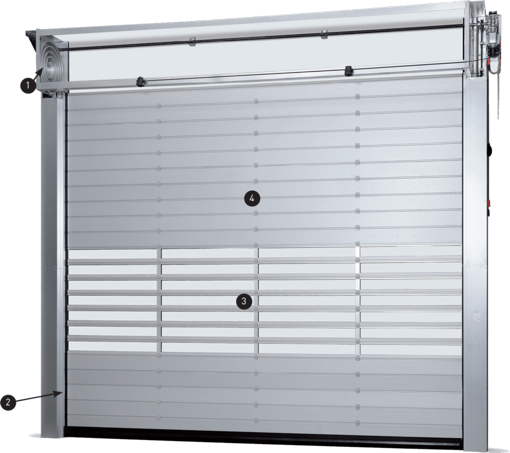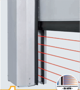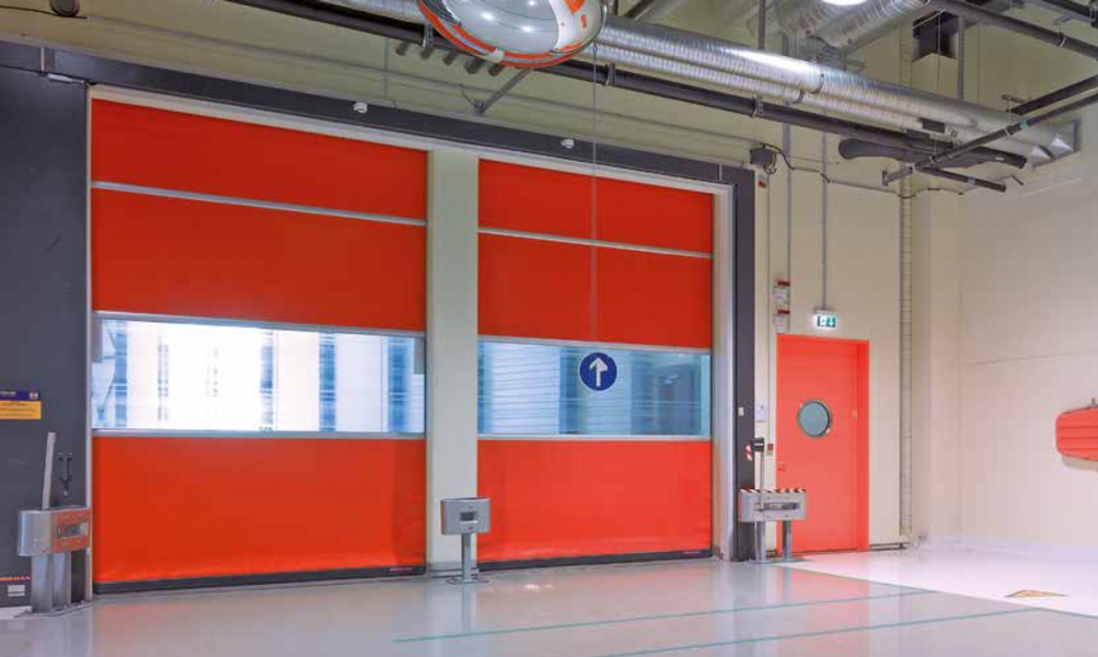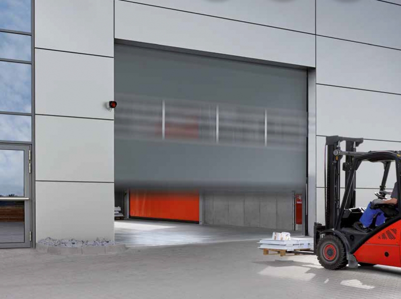 Les panneaux s’enroulent en toute sécurité et sans le moindre contact dans la console spiralée. Avec une commande à convertisseur de fréquence (FU) performante et un mécanisme à chaîne équilibré par ressort, la porte peut atteindre une vitesse d’ouverture de 2,5 m/s. La porte à enroulement spirale HS peut également être montée à l’extérieur.