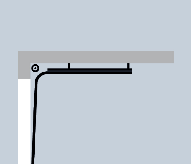 Autre configuration possible : Ferrure N (normale) compacte. En cas d’espace réduit au niveau du linteau, la ferrure N est tout indiquée