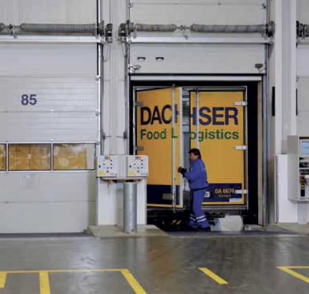 Application avec système DOBO Le poids lourd ou camion à plate-forme peut accoster au poste de chargement les portes fermées.